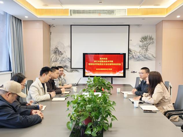 近日,智能技术学院党总支副书记佟珊珊一行,赴杭州市余杭区南渠社区党群服务中心开展党建联建交流活动。南渠社区党委书记、居委会主任金伟峰,余杭木刻雕版多色套印刷术第四代传承人赵杭等相关负责人热情接待并参与座谈。